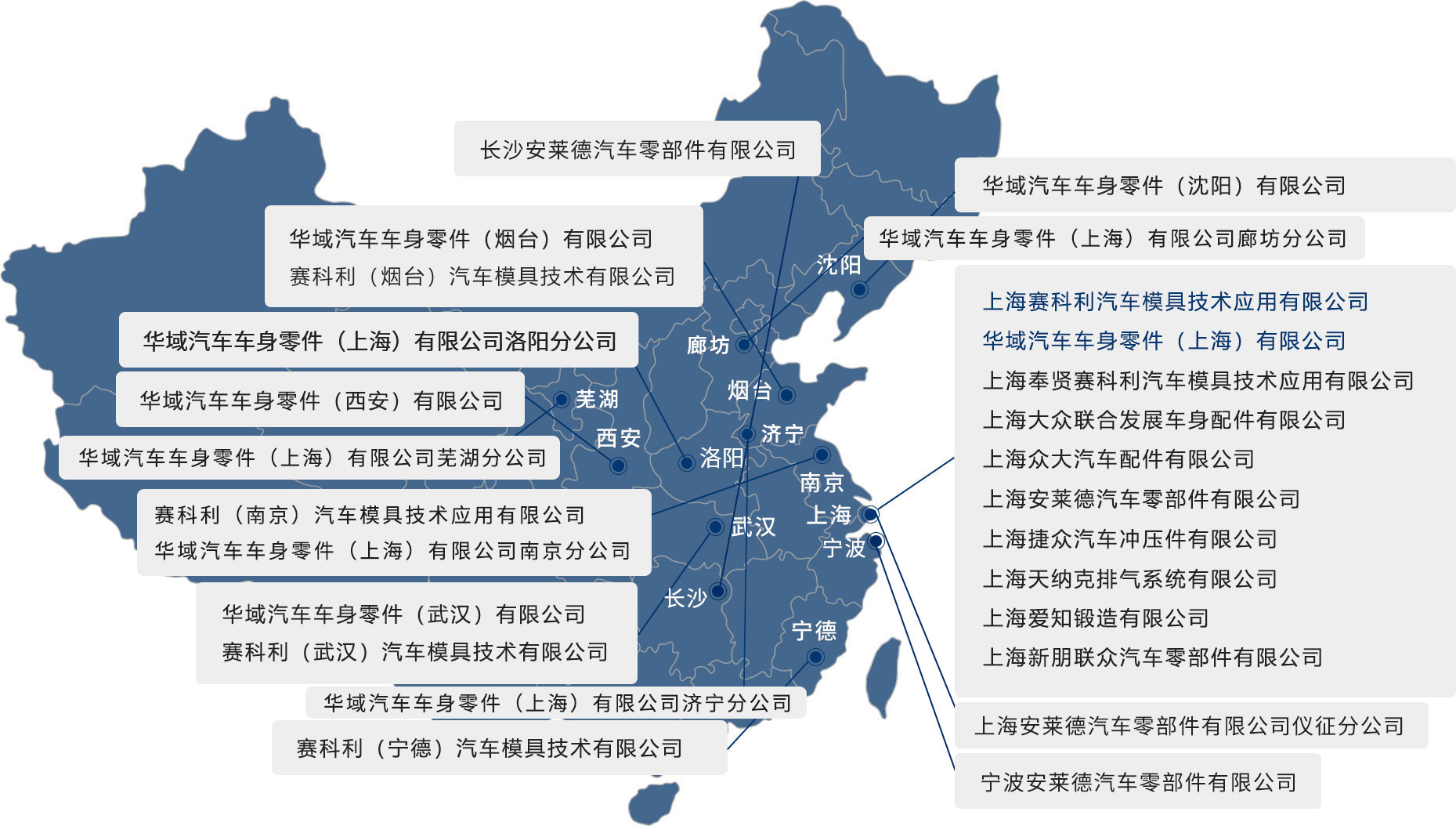 华域赛科利车身,隶属华域汽车系统股份有限公司,是上海市高新技术企业,公司总部位于上海市浦东新区,由上海赛科利汽车模具技术应用有限公司和华域汽车车身零件(上海)有限公司组成,主要客户包括上汽通用、上汽大众、上汽乘用车、宁德时代、小米汽车、特斯拉、比亚迪、吉利、奇瑞等知名品牌。公司始终聚焦“合力向新促变革、聚焦客户创增值”, 以“技术为本、成本为纲、快速响应”为导向,专注金属成型及连接技术,拥有车身件、动力电池结构件、模具三大产品线,致力于打通全价值产业链,实现技术创新、管理创新、卓越运营,为客户提供高效、可靠和专业的产品和服务,现已成为全国一流的车身件总成配套供应商,并逐步发展成为车身技术的行业领军企业。